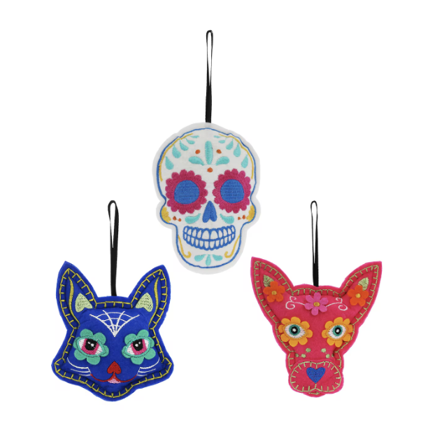 Celebrate Halloween and Día de los Muertos in style with a trendy decor approach that’s sure to turn heads. This year, the spotlight is on vibrant, colorful accents that breathe life into the spooky season, blending the festive spirit of both holidays. Picture your porch adorned with eye-catching sugar skull-themed lanterns, bright banners, and colorful stripes that add a burst of energy to the space. Don’t forget to include playful dog and cat accents, bringing a personal and whimsical touch to your decor. With a mix of bold colors and eclectic patterns, this unique and trendy setup is perfect for those who want to make a statement while honoring the traditions of Halloween and Día de los Muertos.