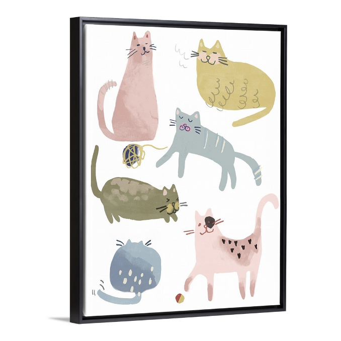 - Cat-Themed Art: There are so many great options for choosing art these days, consider having a custom piece made by a local artist, create a single oversized cat art piece from a site like GreatBigCanvas® that has dozens of dog, cat and pet art to choose from or take a series of photos yourself and create a black and white wall of cat photos.